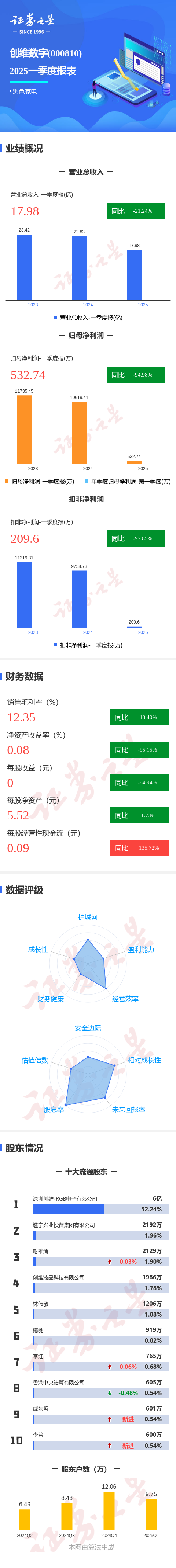 图解创维数字一季报: 第一季度单季净利润同比减94.98%